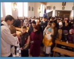 Mszę świętą , poprzedzoną różańcem, celebrował ks. Kustosz, wspomagany przez ks. prałata Aleksandra Radonia, który wygłósił Słowo Boże, uczulając zgromadzonych Jesteśmygości na potrzebę wspierania szkoły o tak bogatej tradycji w jej zakręcie dziejowym. Obok społeczności szkolnej , mieszkańców Wrocanki, znamiennych słów kapłana wysłuchali zaproszeni goście. Ich grono reprezentowali przedstawiciele władz samorządowych z Wójtem Gminy na czele - Bogusławem Wójcikiem, a także dyrekcja szkół z Roztok i Glinika Polskiego, które od września 2011 roku razem z jubilatką tworzą Unię Szkół, kierowaną przez Panią Lilianę Polak, uzupełniającą listę zaproszonych gości.